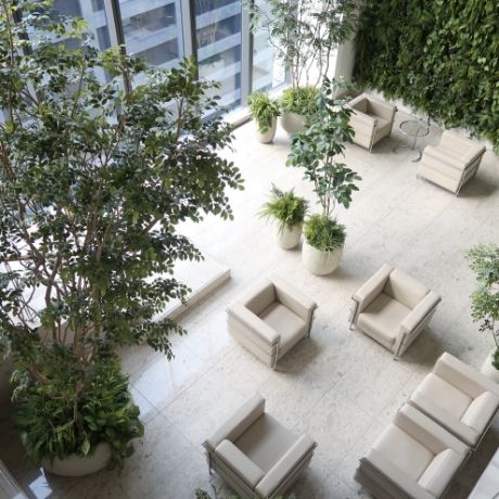必要充分なグリーンを設置することで、幸福度や創造性、生産性が向上するオフィス空間をご提案しています。