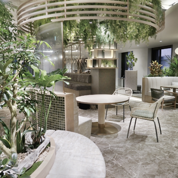 一定量のグリーンを空間に取り入れることで、創造性と幸福度が15%、生産性が6%上昇するエビデンスがあります。緑化されたオフィスで、社員もゲストも豊かなコミュニケーションが活性化します。