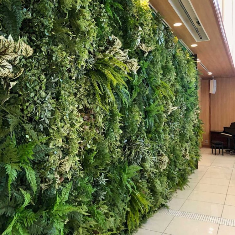 一面のグリーンウォールが美しい結婚式場