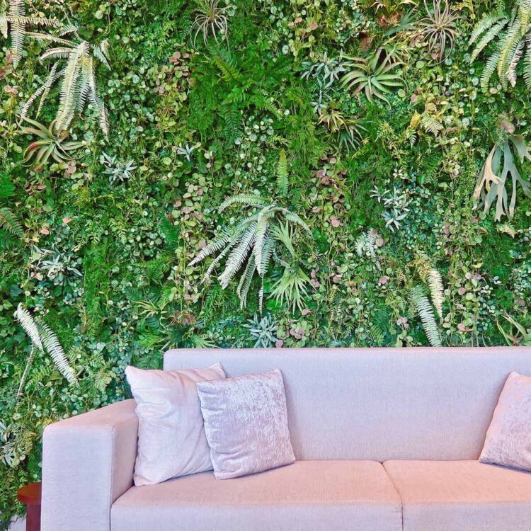 意匠としてだけでなく、撮影などにも映えるクオリティの高いインパクトのあるグリーンウォールに仕上げています。