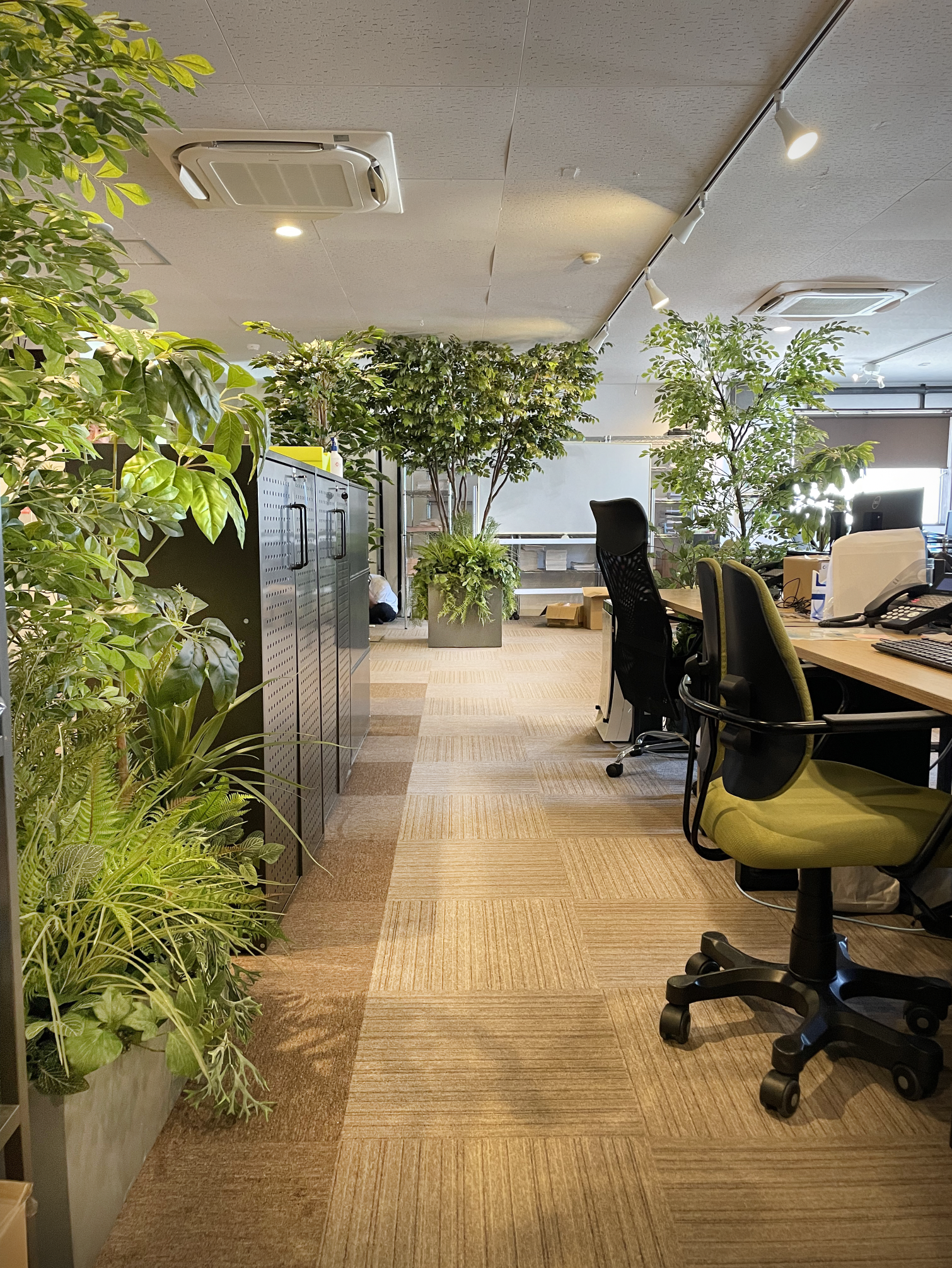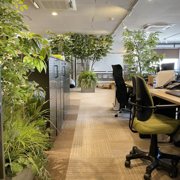 オフィスのリニューアルに伴い、名古屋という場所柄、優秀な人材確保のためグリーンいっぱいのオフィス空間をご採用いただきました。