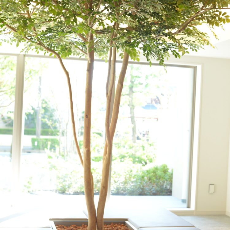 ダイナミックなビジュアルに合わせて、2階に突き抜けているイメージで枝ぶりも調整しました。